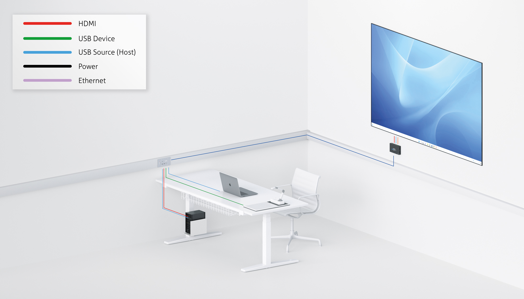 It supports HDMI and USB-C signals over distances up to 40m for 4K resolution and 70m for 1080p with bidirectional PoC for a simplified installation.